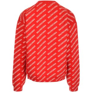 Balenciaga All Over Logo Crewneck Sweater ‘Red White’ 702952T32336090