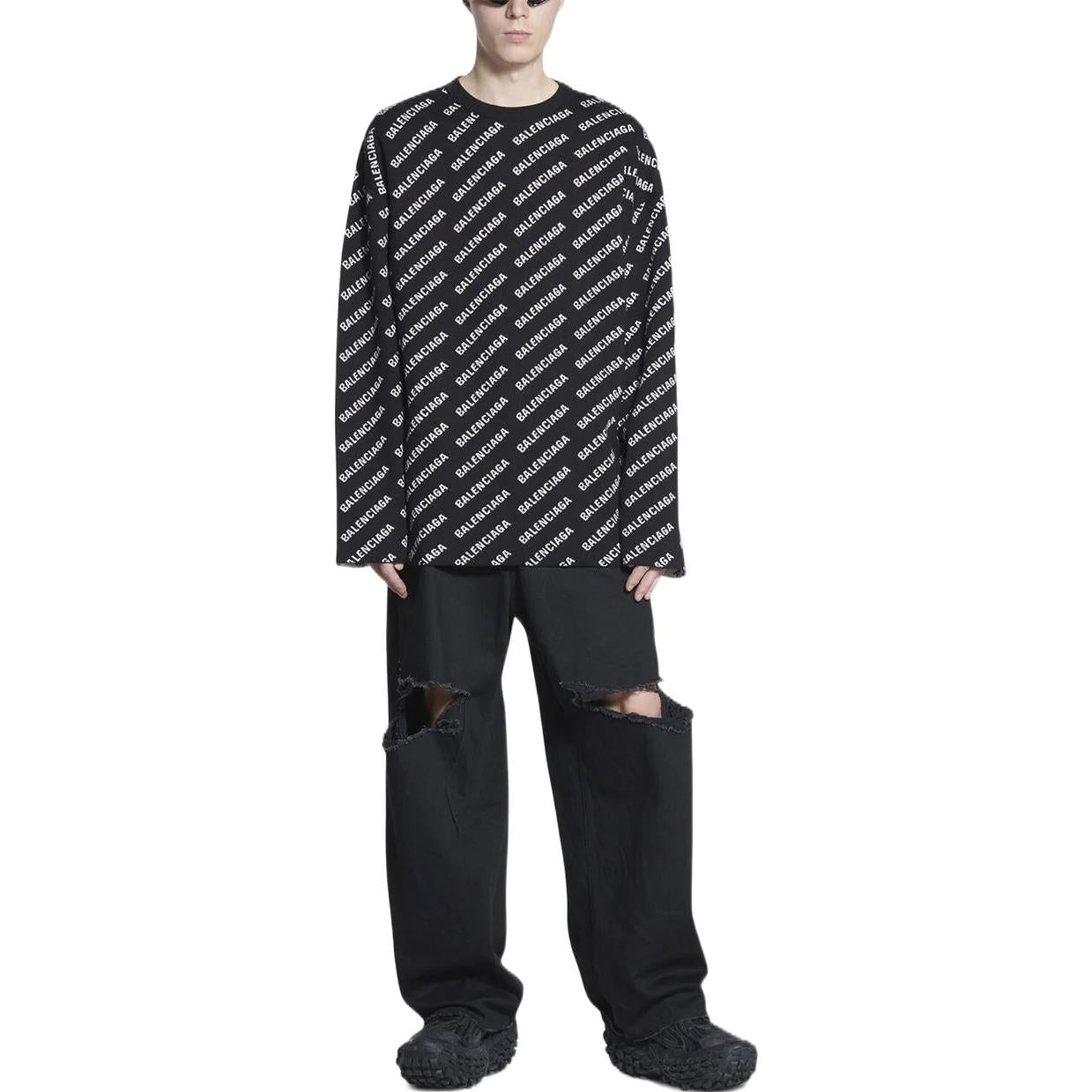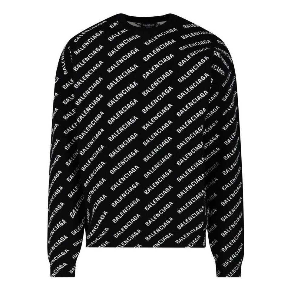 Balenciaga All Over Logo Crewneck Sweater ‘Black White’ 702952T32331070