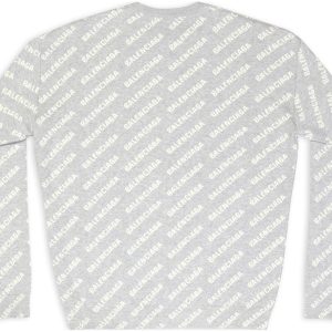 Balenciaga All Over Logo Crewneck Sweater ‘Light Grey White’ 702952T32331461