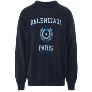 Balenciaga College Crest Crewneck Sweatshirt ‘Navy’ 696226T32394640