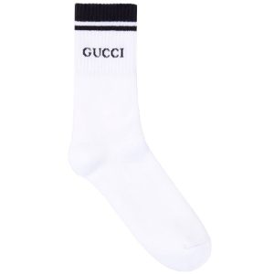 Gucci Logo-intarsia Cotton-Blend Socks ‘White Black’ 496493-4G293-9000