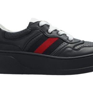 (GS) Gucci Leather Sneaker With Web ‘Black’ 455496-DF720-4073