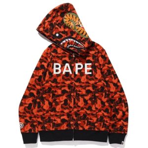 A Bathing Ape x XO Shark Camo Full Zip Hoodie ‘Orange Red’ 1F73-115-925