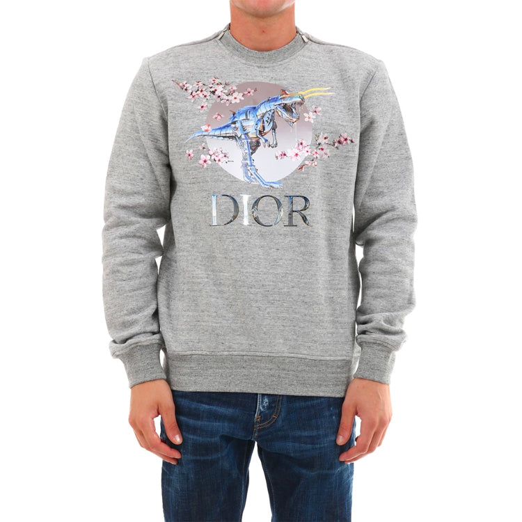DIOR Tyrannosaurus Rex Cherry Blossom Zipper Sweater Unisex Grey 933J635B0555-880