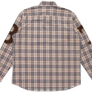 Men’s Burberry Alphabet Pattern Vintage Plaid Long Sleeves Shirt Yellow 80423501