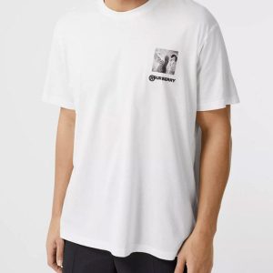 Men’s Burberry Chest Printing Cotton Short Sleeve White 45637961