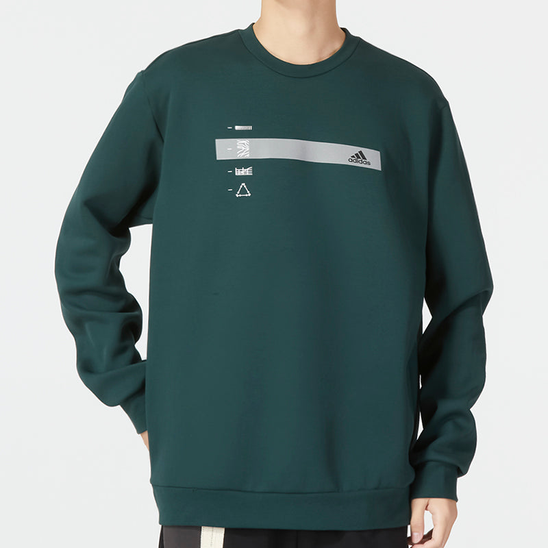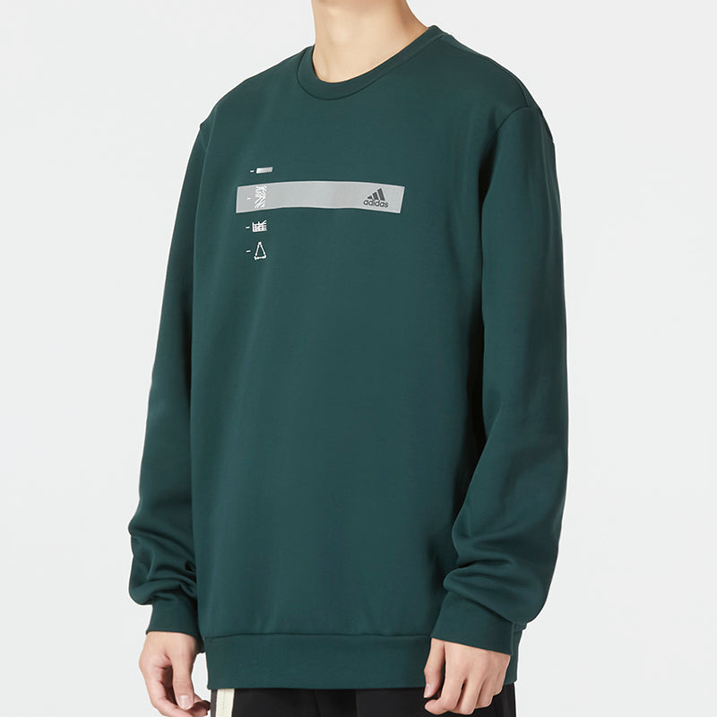 adidas Alphabet Pattern Pullover Round Neck Long Sleeves Hoodie Men’s Green HN9022
