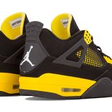 The Air Jordan 4 Retro ‘Thunder’ is back for 2012! This classic sneaker was first released in 2006 as part of the ‘Thunder and Lightning’ pack and is now available again. The smooth black nubuck upper is accented with yellow eyelets, quarter panel and interior tongue. The woven Jumpman-branded tag on the exterior side and molded heel panel with second Jumpman logo add style and detail. The polyurethane midsole provides lightweight cushioning and the visible Air sole unit ensures lasting comfort. Get your hands on this classic sneaker today!