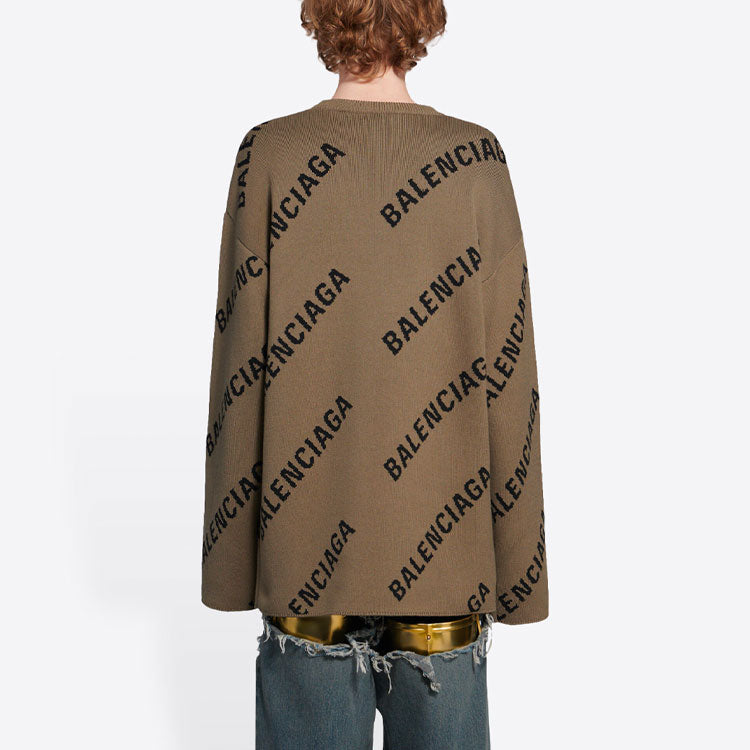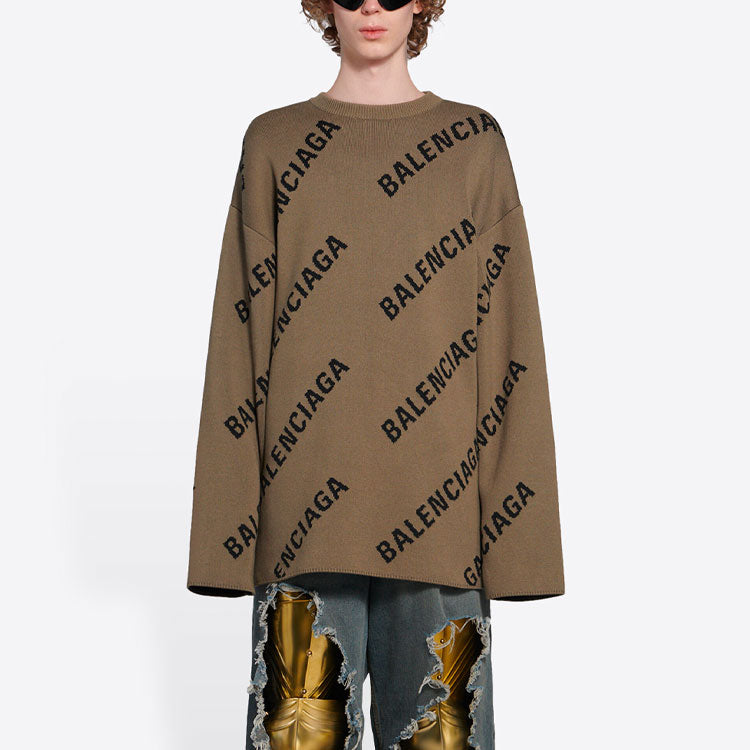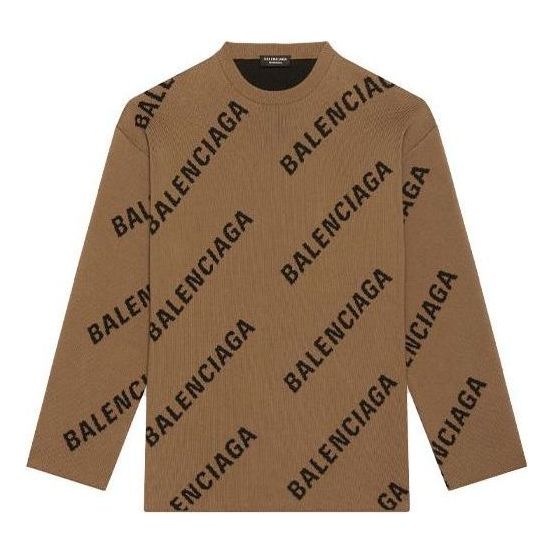 Balenciaga All Over Logo Crewneck Wool Knit Sweater ‘Light Brown’ 657401T32002900