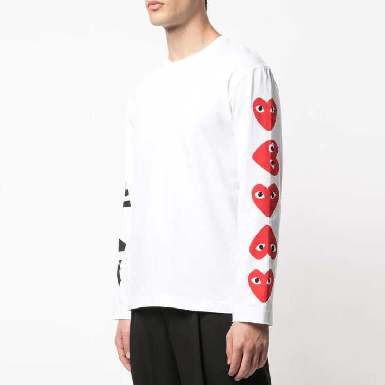 COMME des GARCONS PLAY L/S Printed Logos T-Shirt 61 ‘White’ P1-T262-B21-1