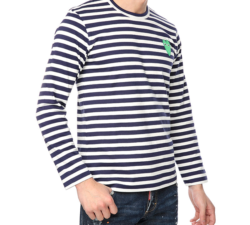 COMME des GARCONS PLAY Striped Long Heart Long Sleeves Tee ‘Navy White’ AZ-T052-051-1