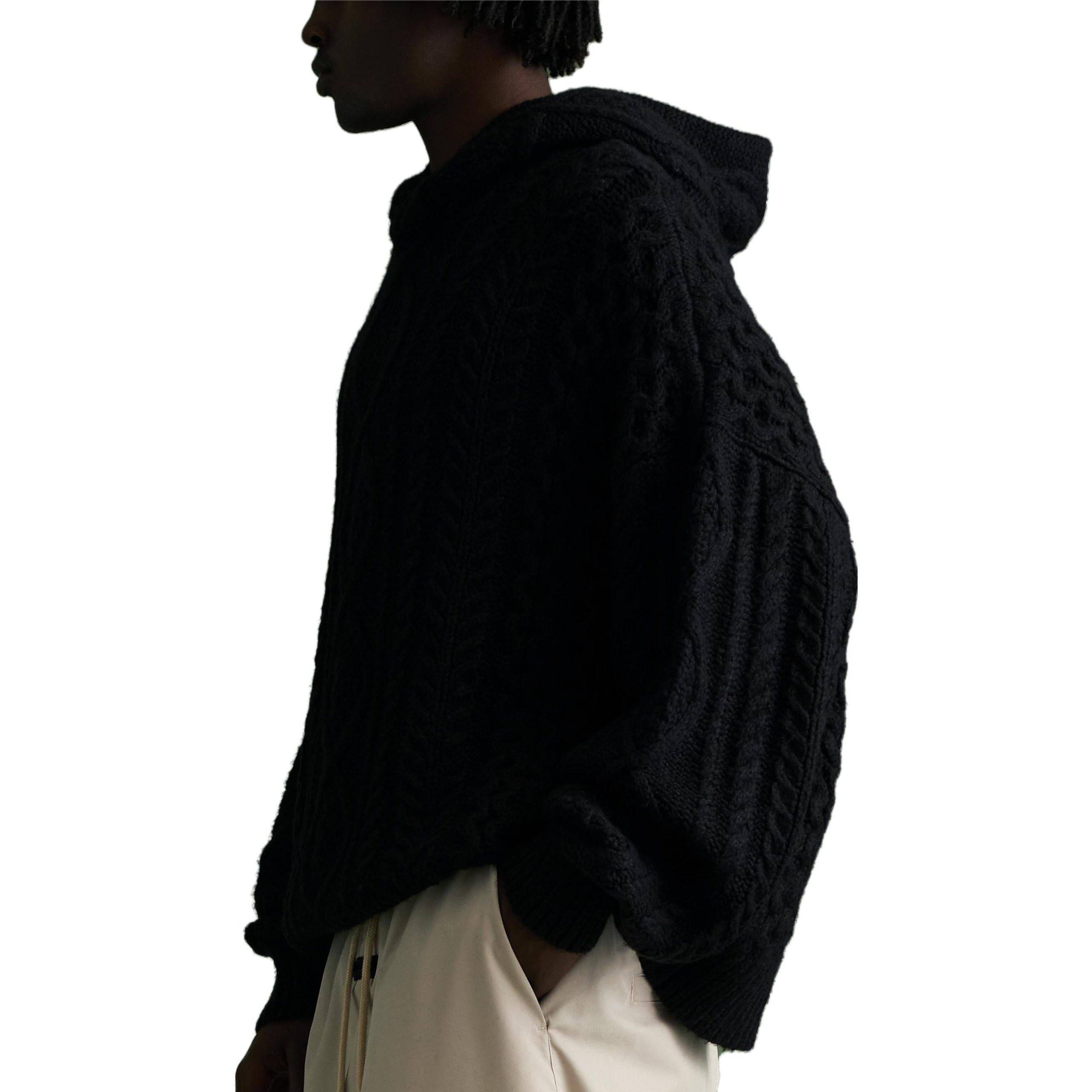 Fear of God Essentials FW23 Cable Knit Hoodie ‘Jet Black’ 192BT234390F