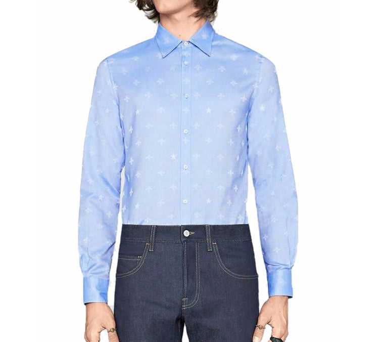 Gucci Bee Star Print Long Sleeve Shirt For Men Blue 452041-Z327C-4910