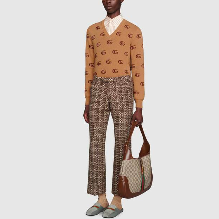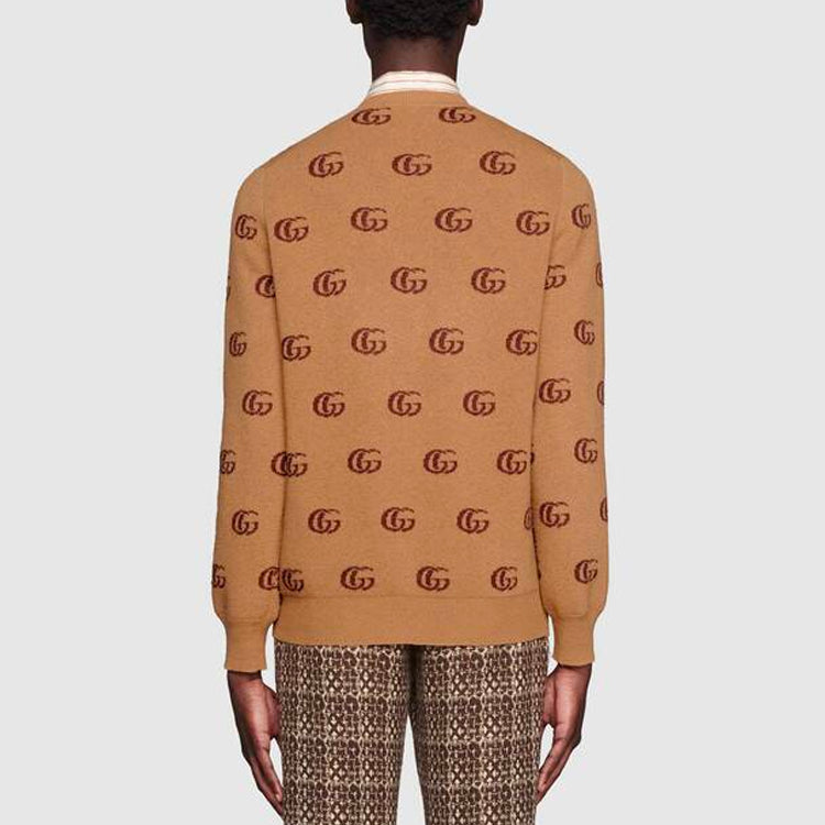 Gucci Double G Jacquard Wool V-Neck Sweater ‘Camel Brown’ 645292-XKBPF-8011