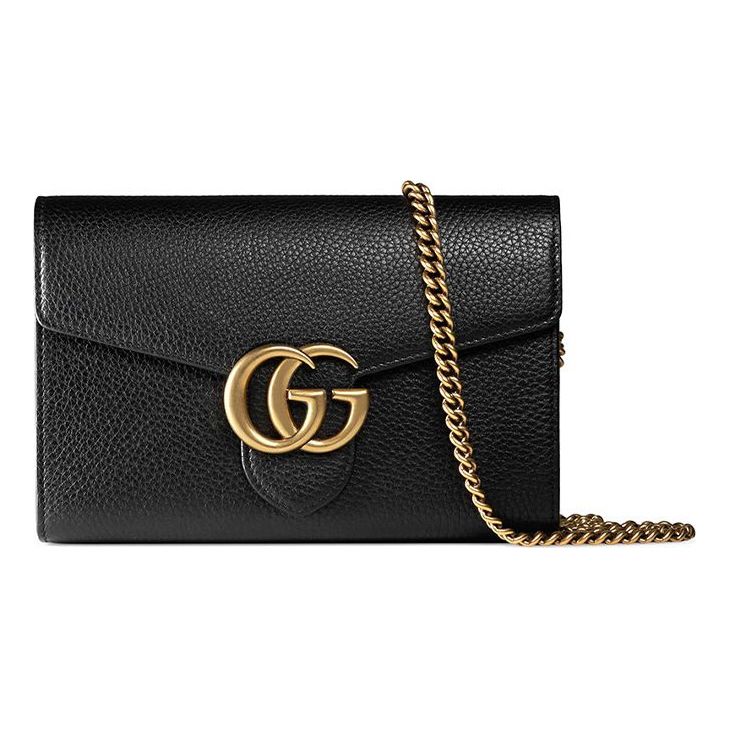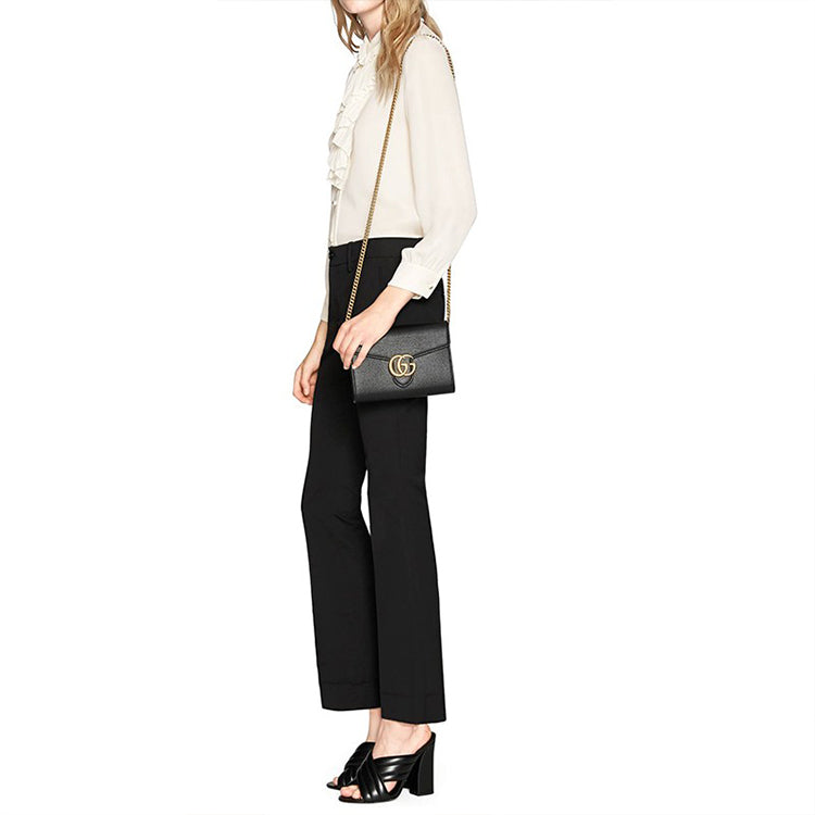 Gucci GG Marmont Gold Label Logo Leather Chain Wallet Shoulder Messenger Bag Black 401232-A7M0T-1000