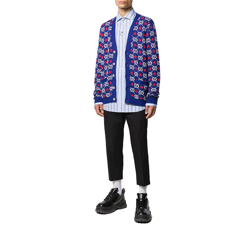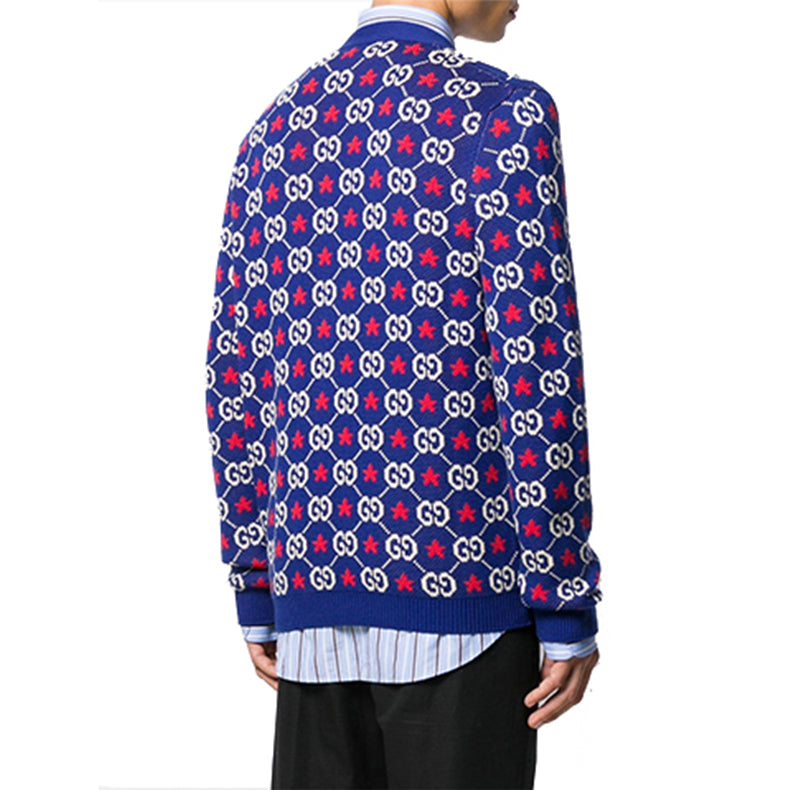 Gucci GG Star Long Sleeve Knitted Cardigan For Men Blue 576793-XKAUI-4915