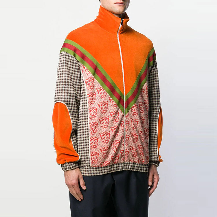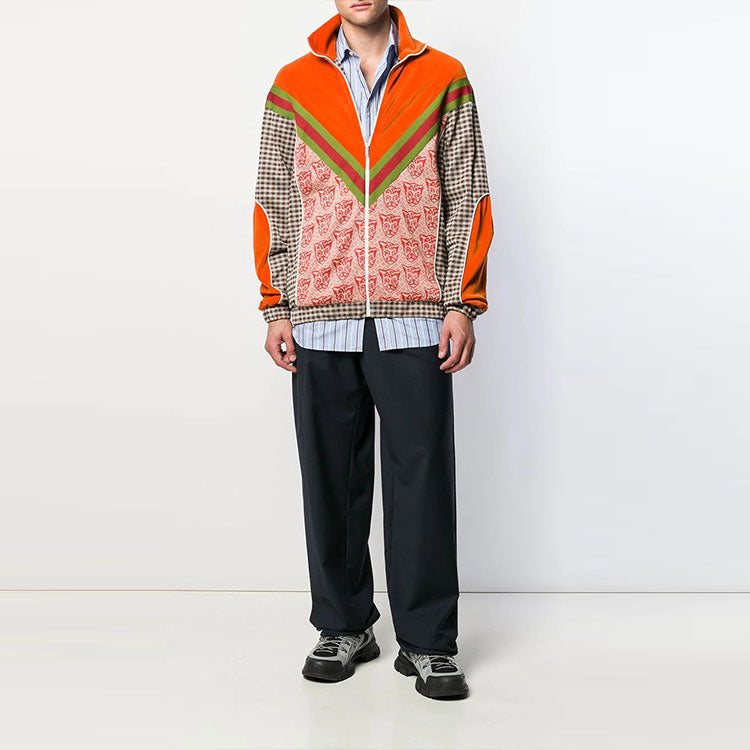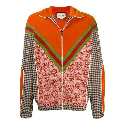 Gucci Houndstooth Cat-print Cotton-blend Track Jacket ‘Orange’ 580551-XJBFR-7548