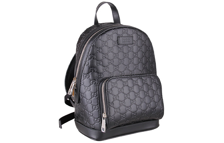 Gucci Logo Embossing Cowhide Schoolbag Backpack Black Minimalistic Classic 450967-CWCQN-1000