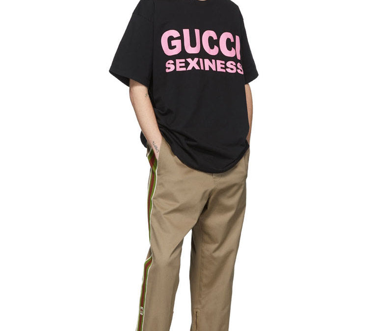 Gucci Pink Alphabet Printing Short Sleeve Black 616036-XJCK1-1024