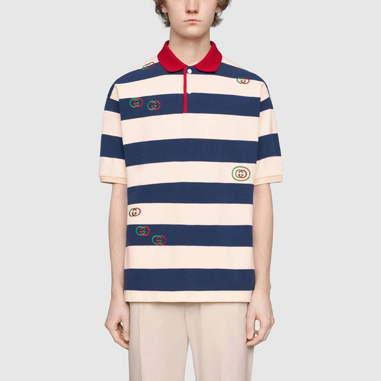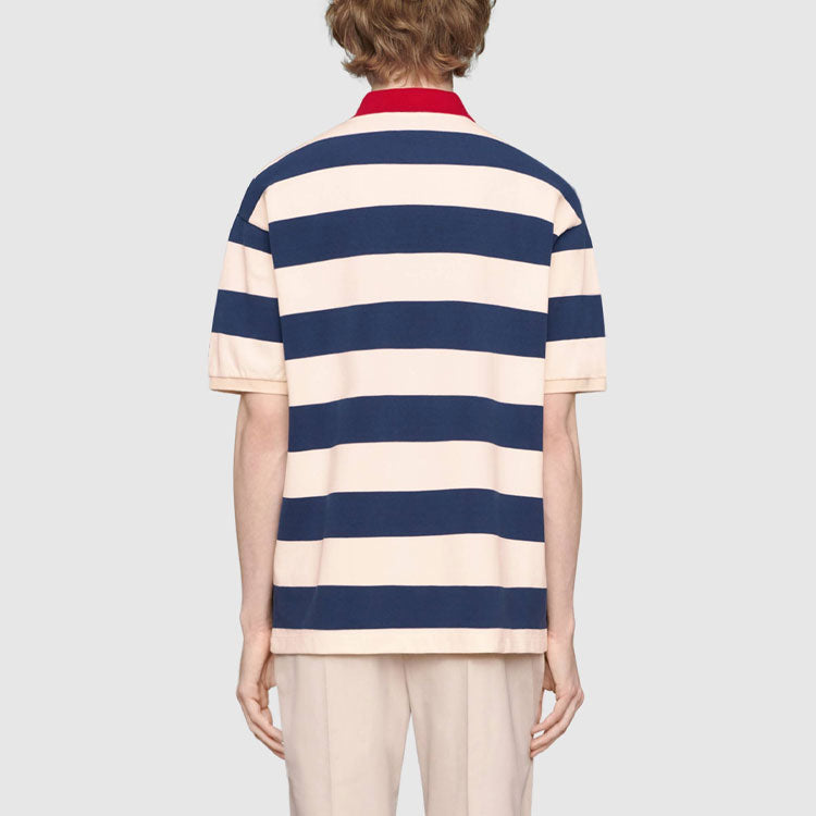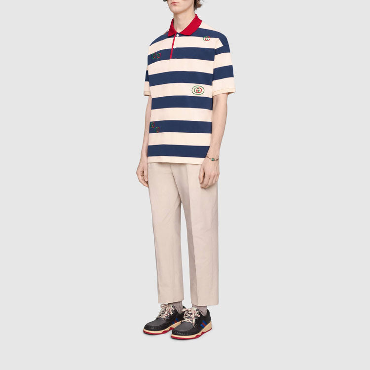 Gucci SS21 Embroidered Stripe Knit Short Sleeve Polo Shirt Blue 581976-XJA6H-4594