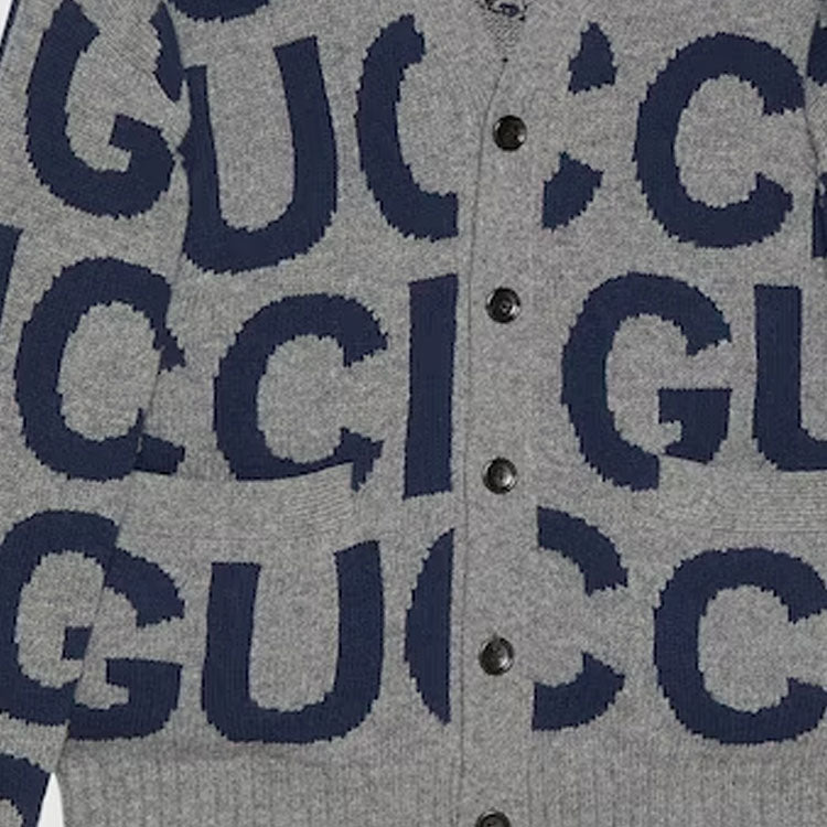 Gucci Wool Cardigan With Gucci Intarsia ‘Grey Bue’ 771707-XKDLV-1140