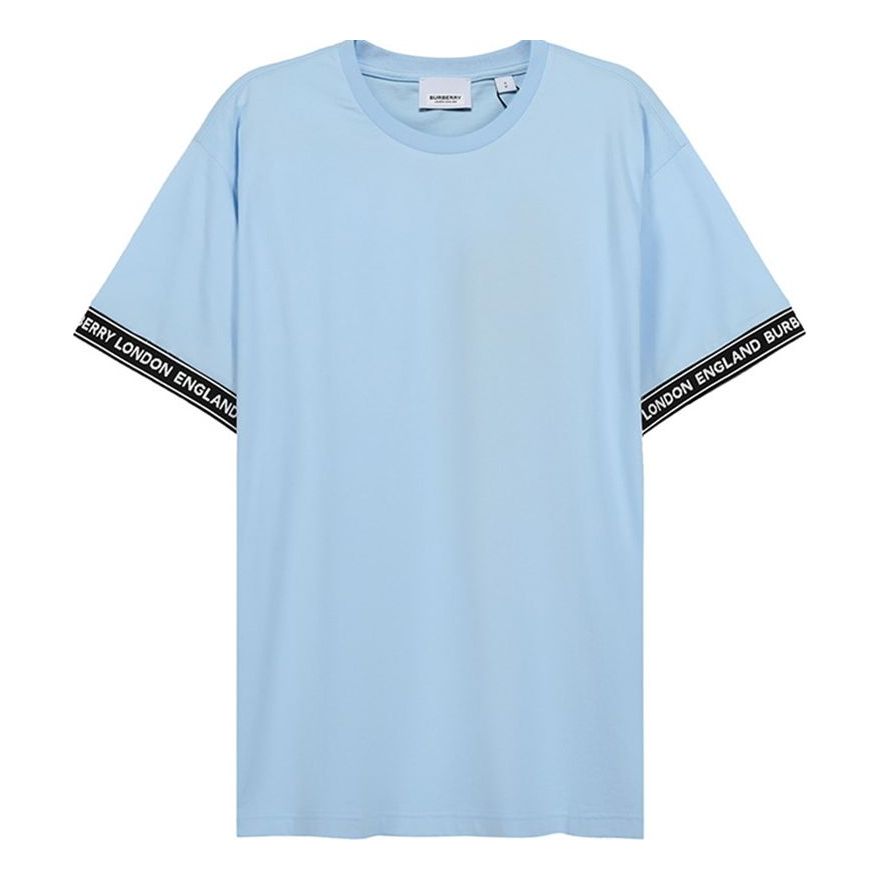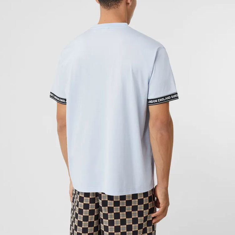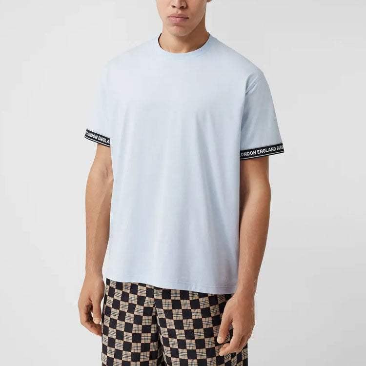 Men’s Burberry FW20 Logo Cotton Loose Version Round Neck Short Sleeve Light Blue 80294491