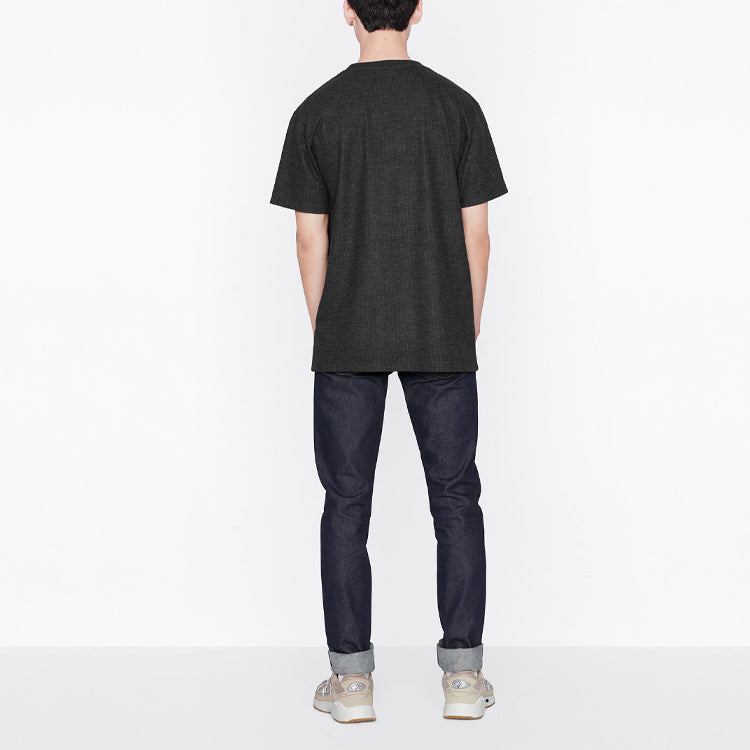 Men’s DIOR SS22 Alphabet Printing Round Neck Short Sleeve Gray T-Shirt 213J637A0739-C870