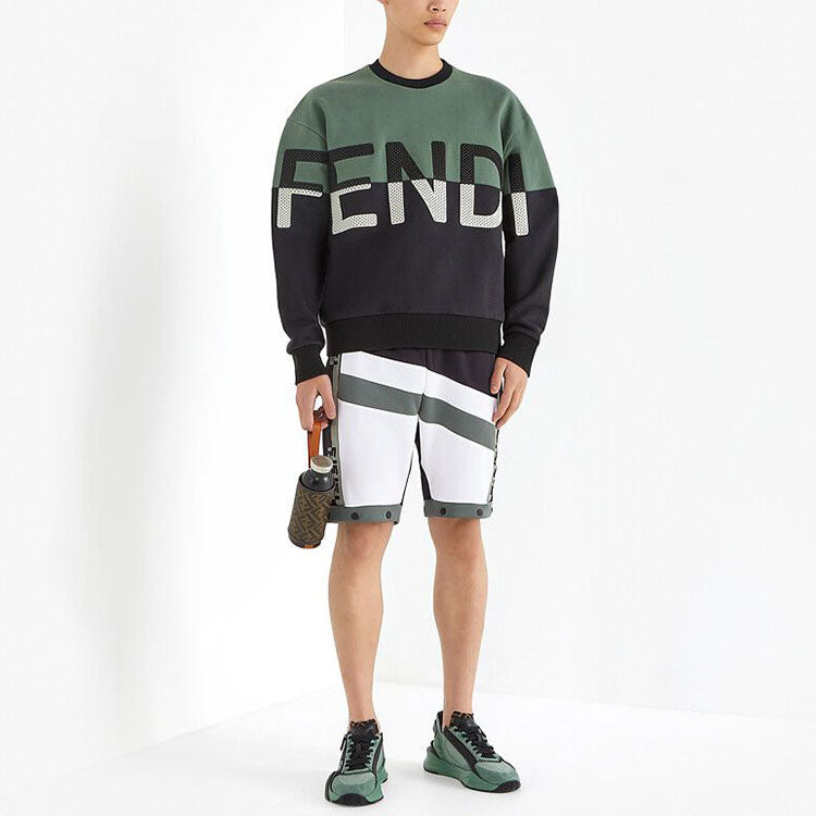Men’s FENDI FW21 Cotton Colorblock Round Neck Long Sleeves Sage Green FAF626A527F1DS9