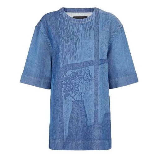 Men’s FENDI FW21 Round Neck Short Sleeve Denim Blue T-Shirt FS0971AF8BF0QA2