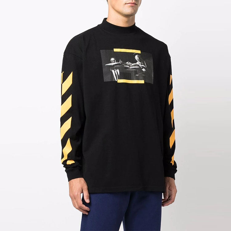 Men’s Off-White Caravaggio Painting Pattern Stripe Long Sleeves Loose Fit Black OMAB032F21JER0061084