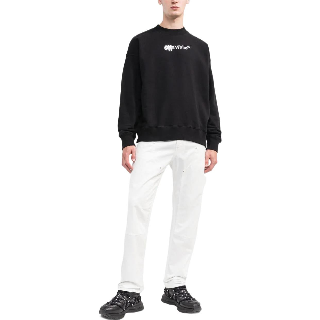 Men’s Off-White FW22 Logo Embroidered Round Neck Long Sleeves Black OMBA054F22FLE0011001