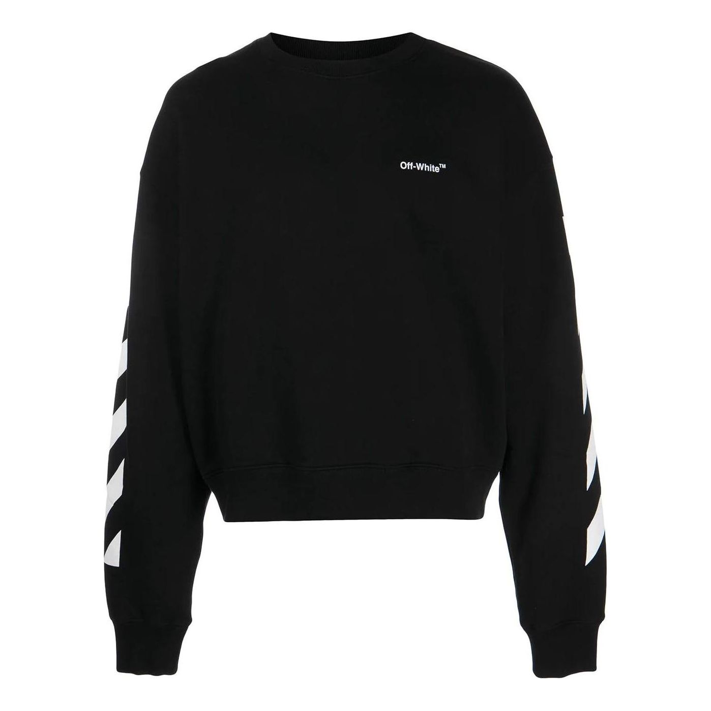 Men’s Off-White FW22 Stripe Logo Printing Round Neck Long Sleeves Loose Fit Autumn Black OMBA058C99FLE0011001