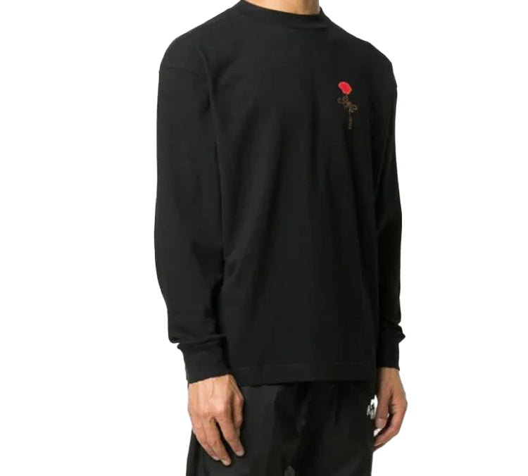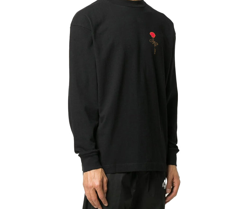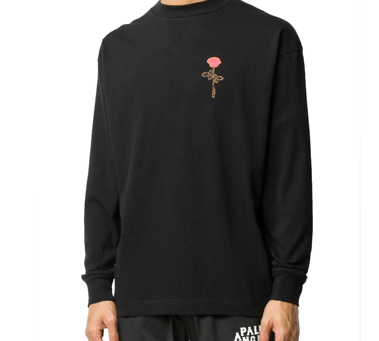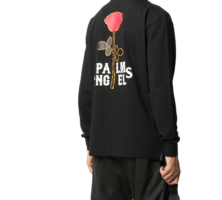 Men’s PALM ANGELS Back Rose Printing Long Sleeves Black PMAB002E20JER0021025