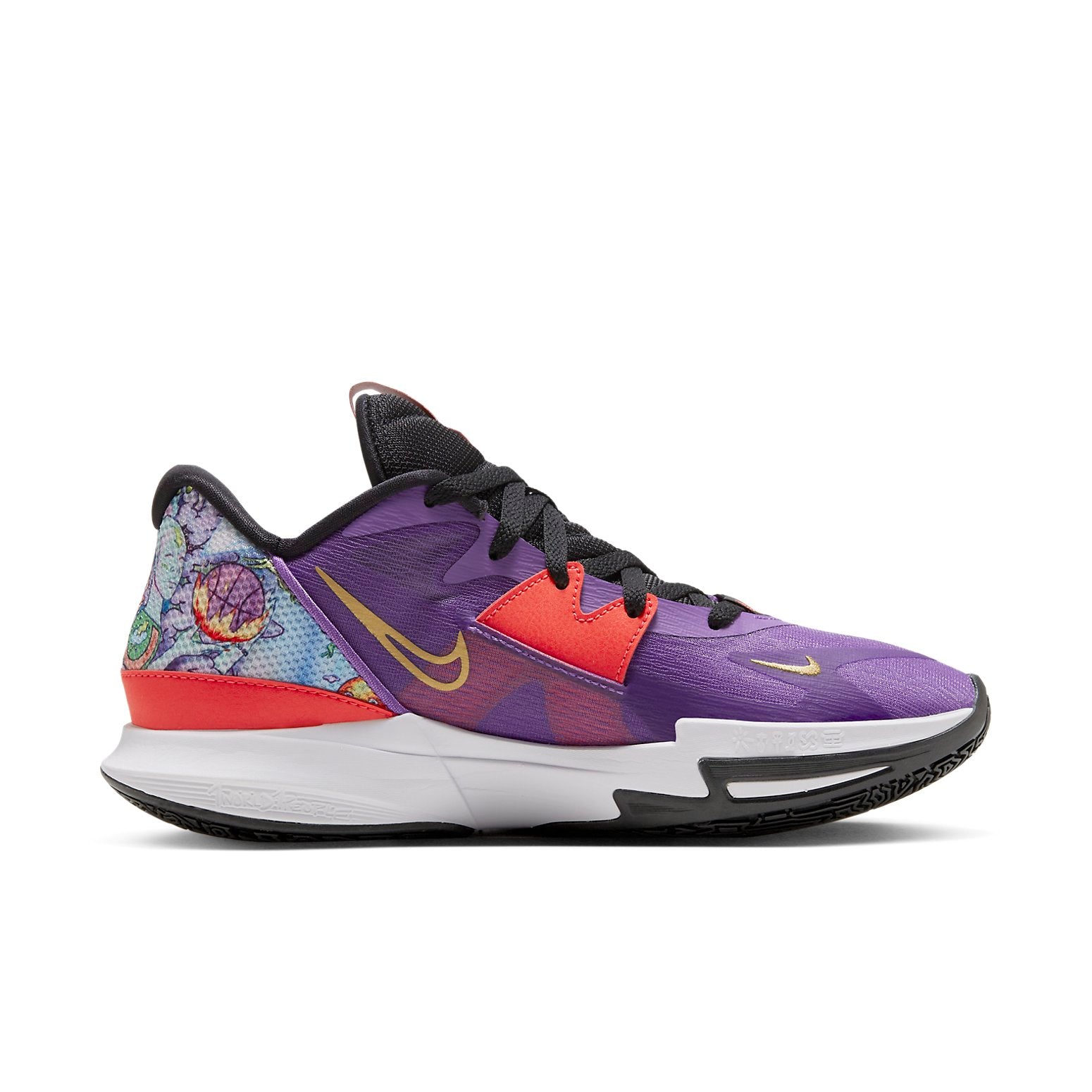 The Nike Kyrie Low 5 EP is the perfect basketball shoe for those who want to make their mark on the court. Its sleek silhouette and rubber sole provide superior traction and stability, allowing you to make quick cuts and weave through defenders. The Black/Metallic Gold/Action Grape-Bright Crimson colorway is inspired by Kyrie Irving’s signature style and is sure to make a statement. The shoe is also designed to be durable and comfortable, making it suitable for both indoor and outdoor courts. Get ready to make your mark with the Nike Kyrie Low 5 EP.
