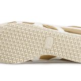 The Onitsuka Tiger Mexico 66 Gold White is a stylish fusion of retro running shoe design and modern street appeal. Crafted from premium calf leather in metallic gold, this low-top features iconic white tiger stripes and gold leather overlays for a bold look. The two-tone foam midsole provides cushioning, while the cream-colored outsole offers traction. A distinctive gold leather heel tab with white Tiger branding adds a touch of elegance. This eye-catching sneaker is a testament to Onitsuka Tiger’s legacy as a Japanese sports brand.
