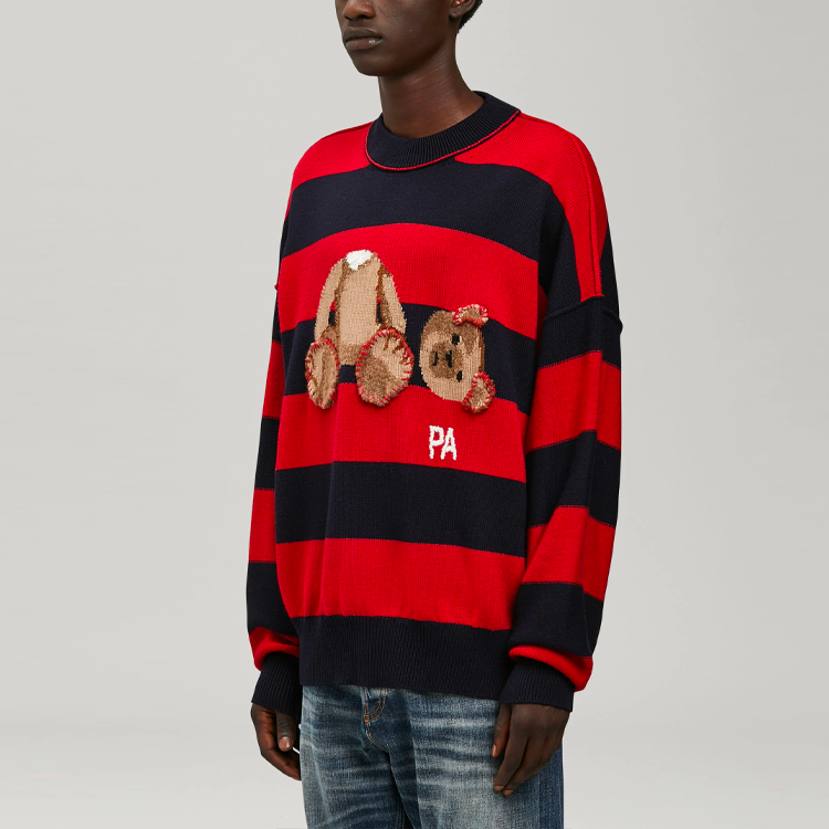 Palm Angels Bear Striped Sweater ‘Navy Blue Red’ PMHE007S22KNI0014660