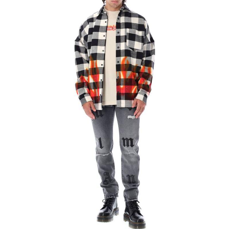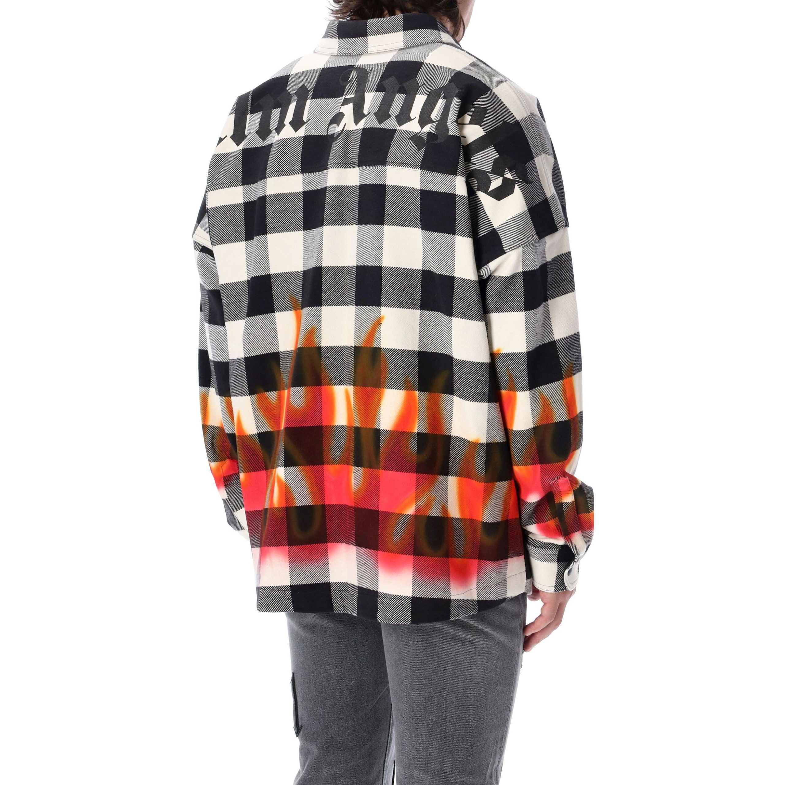 Palm Angels FW22 Burning Logo Overshirt ‘Black Red’ PMGA024F22FAB0021025