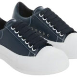 (WMNS) Alexander McQueen Deck Plimsoll Lace-Up Leather Sneakers ‘Navy’ 667245WIABK4472
