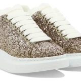 (WMNS) Alexander McQueen Larry Oversized Shoes ‘Gold Glitter White’ 736296W4VJ12228
