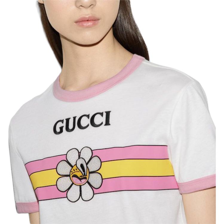 (WMNS) Gucci Cotton Jersey Printed T-Shirt ‘Off White’ 723566-XJGHL-9088