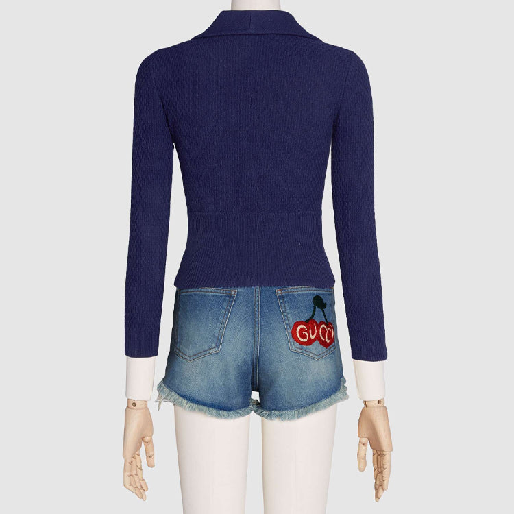 (WMNS) Gucci GG Apple Patch Polo Knitwear For Blue 622116-XKBB9-4447