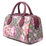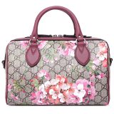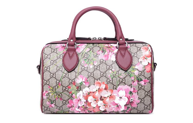 (WMNS) Gucci GG Blooms Logo Printing Canvas Boston Small Ebony / Pink / Wine Red Handbag 409529-KU2IN-8693