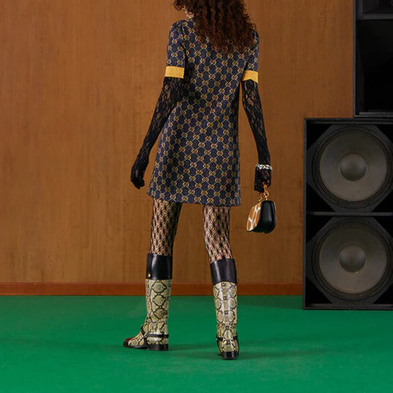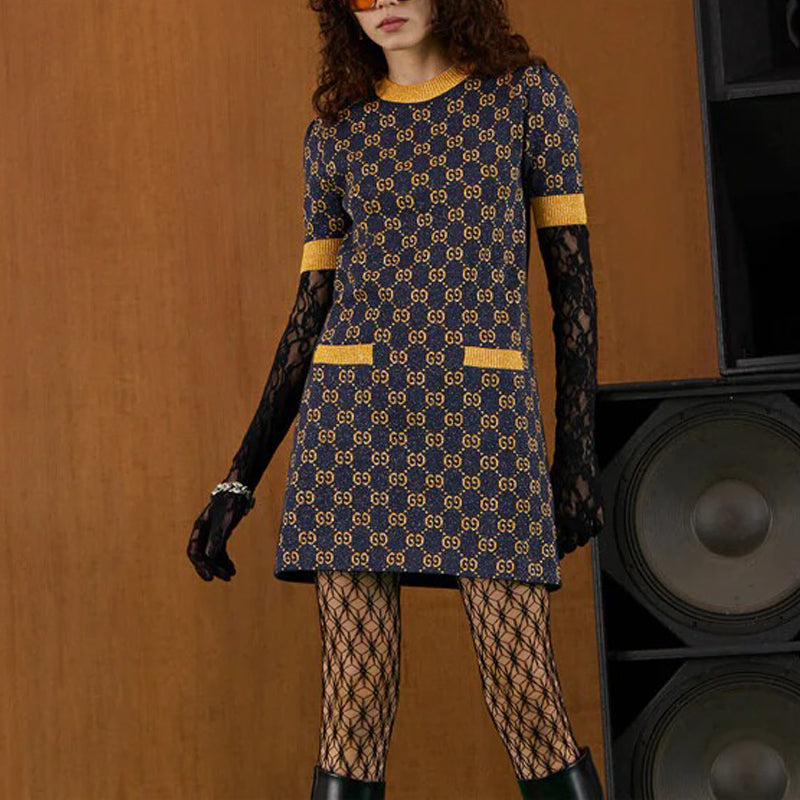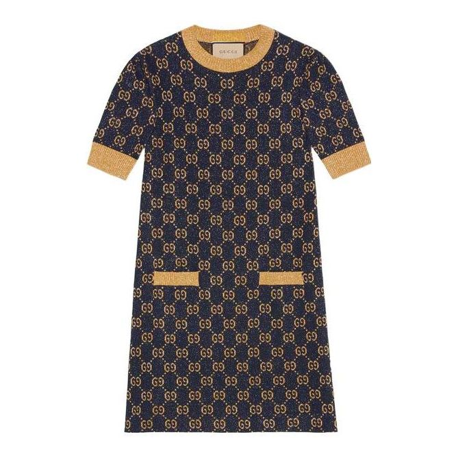 (WMNS) Gucci GG lam jacquard dress ‘Navy Gold’ 692707-XKB54-4597
