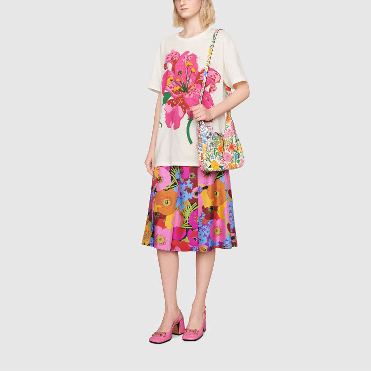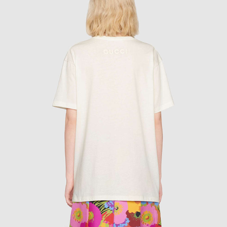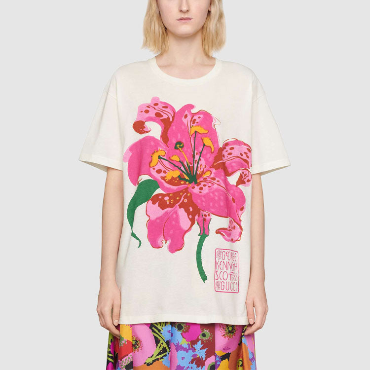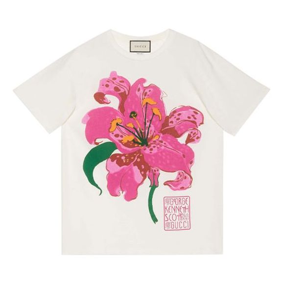 (WMNS) Gucci Ken Scott Flowers Printing Loose Round Neck Short Sleeve White T-Shirt 615044-XJDBQ-9095