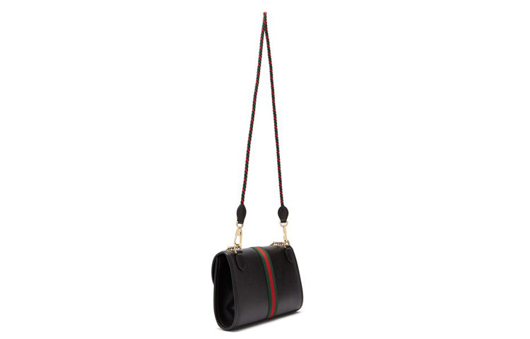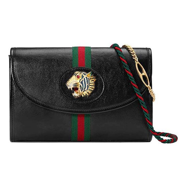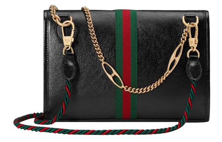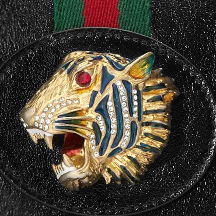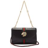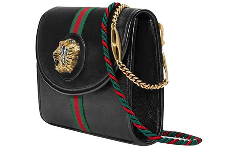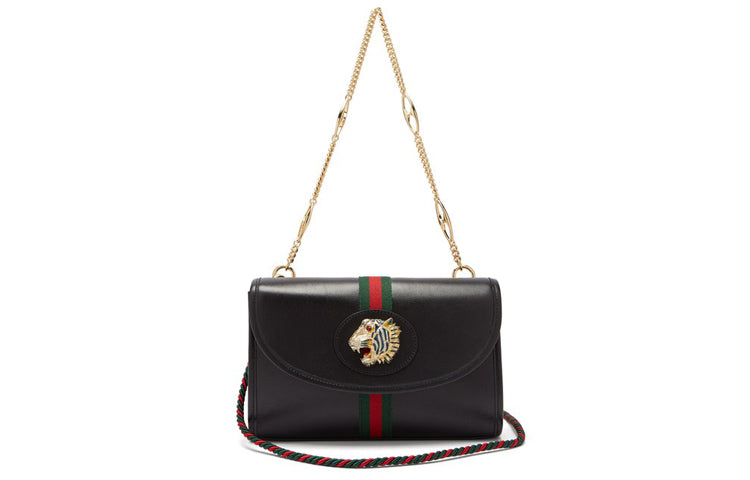 (WMNS) Gucci Rajah Enamel Tiger Head Stripe Webbing Leather Chain Shoulder Messenger Bag Black Retro 564697-0OLKX-8389