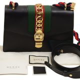 Be the first to review “(WMNS) Gucci Sylvie Gold buckle Stripe Webbing Bow Wide Version Leather handbag Small Black 421882CVLEG-8638”