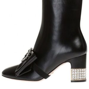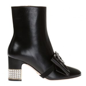 (WMNS) Gucci Removable Bow Leather Ankle Boots ‘Black’ 481171-BKO00-1000