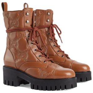 (WMNS) Gucci Quilted Lace-Up Boots ‘Brown’ 718386-DS8U0-2741